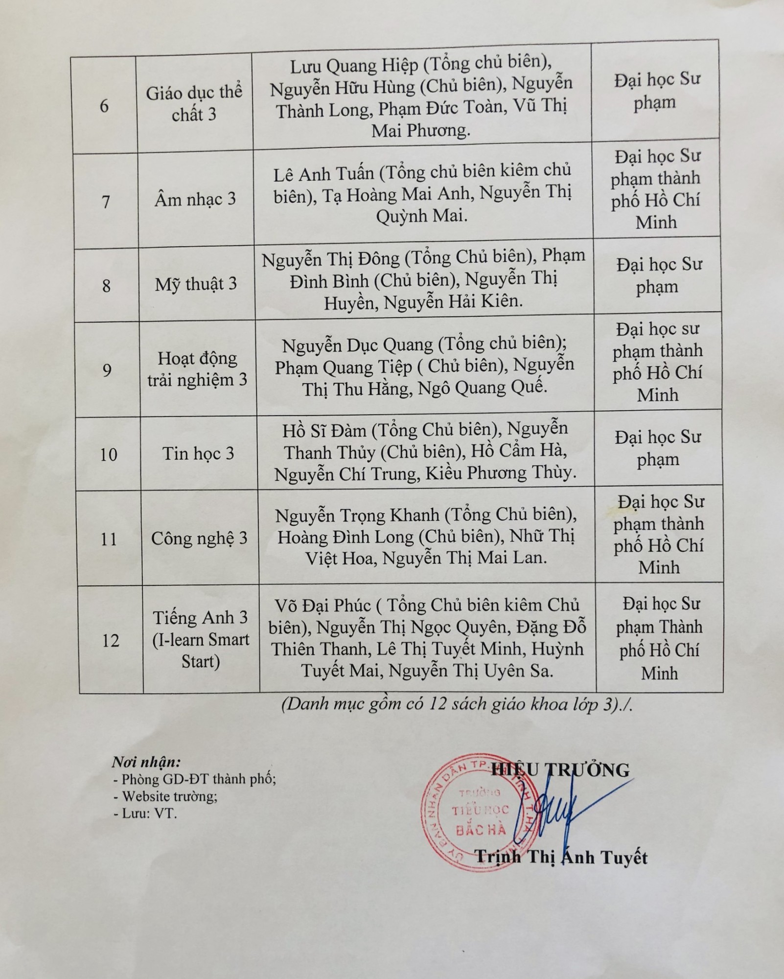 Trường Tiểu học Bắc Hà thông báo danh mục SGK lớp 5 năm học 2024-2025 được lựa chọn theo Chương trình GDPT 2018, như sau: