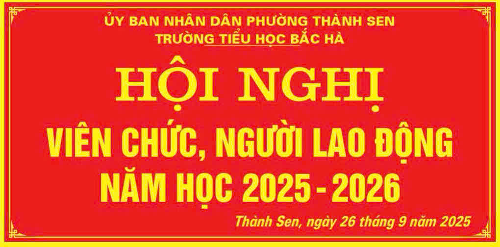 Sáng 26/9/2025, Trường Tiểu học Bắc Hà – phường Thành Sen, Tỉnh Hà Tĩnh đã long trọng tổ chức Hội nghị Viên chức, Người lao động năm học 2025–2026. Đây là dịp để toàn thể cán bộ, giáo viên, nhân viên nhà trường cùng nhìn lại kết quả thực hiện nhiệm vụ năm học 2024–2025, triển khai phương hướng, nhiệm vụ năm học mới và phát huy quyền làm chủ trong thực hiện nhiệm vụ chính trị của đơn vị.