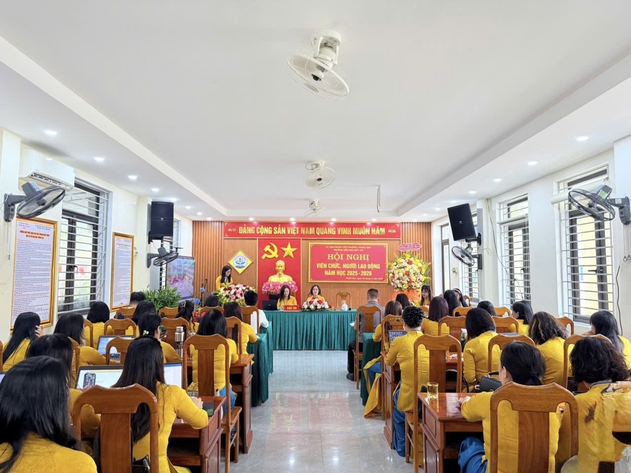 Hội nghị được tổ chức trang trọng, nghiêm túc theo đúng quy định và hướng dẫn của Sở Giáo dục & Đào tạo. Tại đây, các đại biểu đã nghe báo cáo kiểm điểm, đánh giá kết quả năm học 2024–2025; thảo luận, đóng góp nhiều ý kiến thiết thực cho kế hoạch nhiệm vụ năm học 2025–2026; đồng thời tiến hành khen thưởng và phát động phong trào thi đua mới.